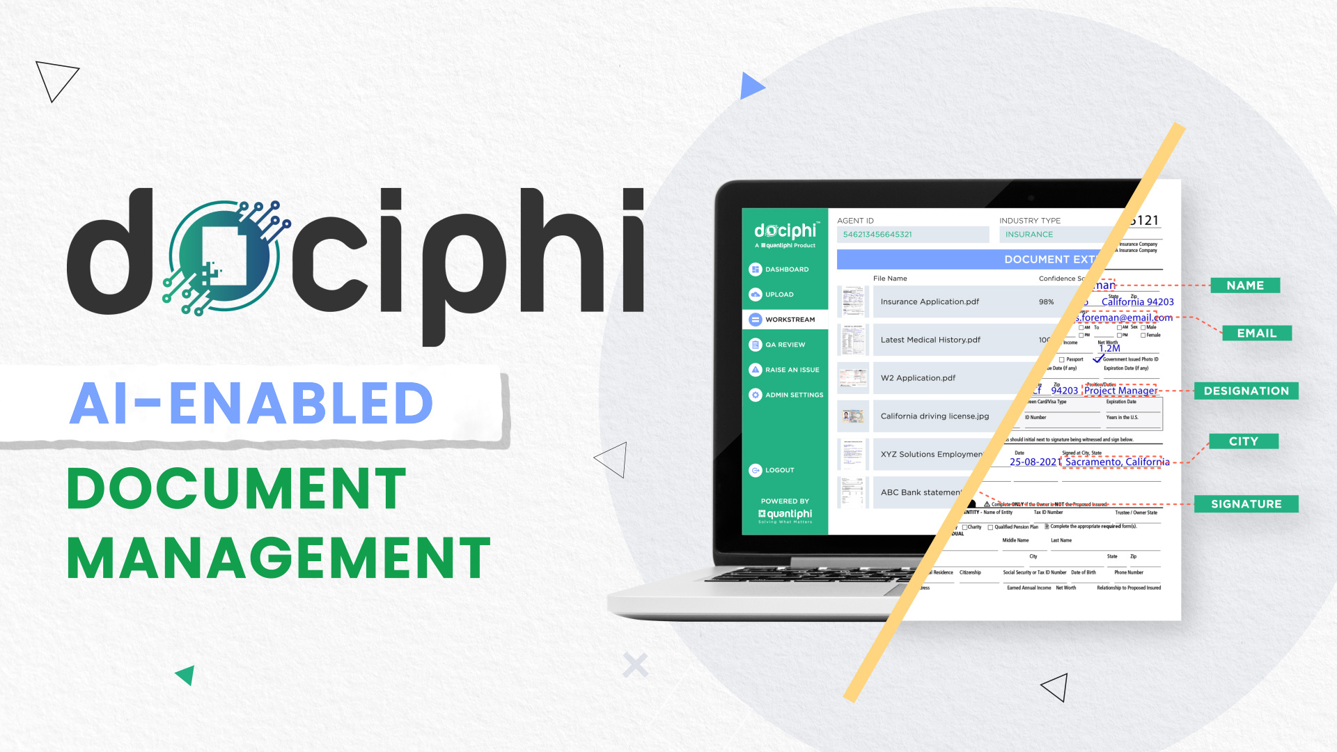dociphi, Quantiphi’s transformative document processing SaaS platform, enables financial services companies to streamline document processing workflows. Customizable to your company’s needs, dociphi empowers banks, fintech companies and lenders to reduce operational costs, time and manual workloads, ensure regulatory compliance and deliver superior customer experiences.